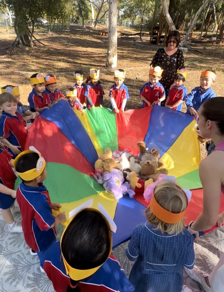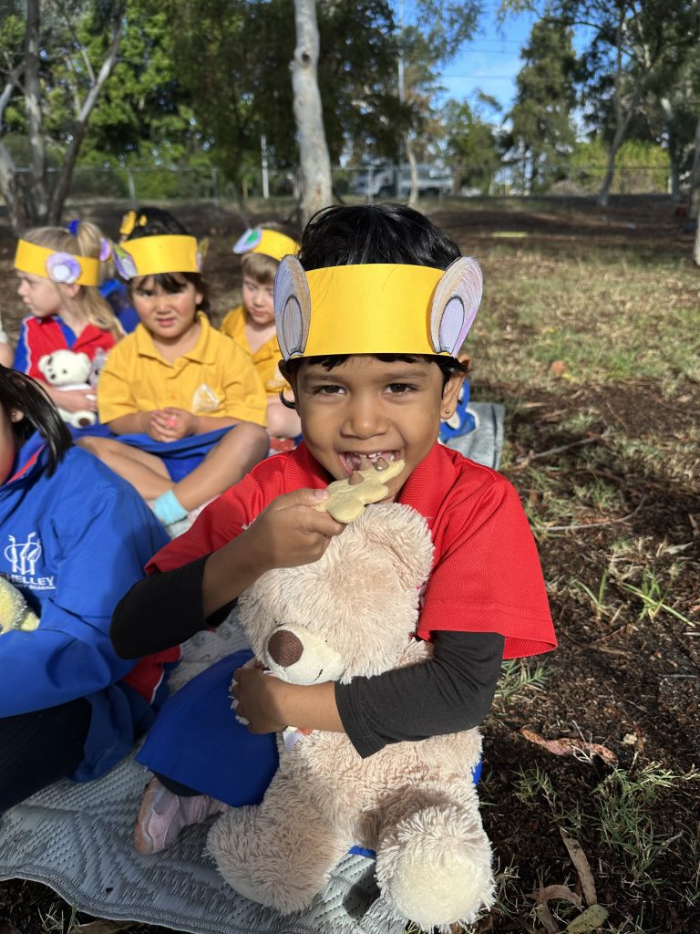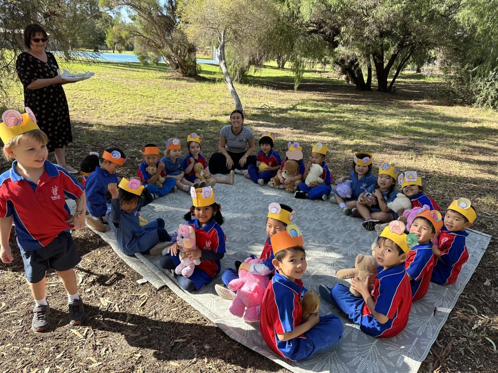 Last week, our Kindy students took part in a special Teddy Bear Picnic. Each child brought along a favourite teddy and made their bear ear ‘disguise’ to wear for the day. They shared picnic snacks, played parachute games, and pretended to be bears exploring in the forest. It was a great opportunity for creative play, social interaction, and making happy memories together.